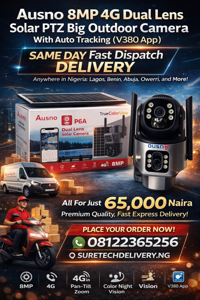 ausno 8mp solar camera nigeria, 4g solar cctv camera nigeria, dual lens solar security camera nigeria, outdoor solar ptz camera nigeria, 4g sim card security camera nigeria, best solar cctv camera nigeria, solar powered security camera nigeria, ausno 8mp ptz camera price nigeria, v380 app solar camera nigeria, outdoor security camera with solar panel nigeria, ai auto tracking camera nigeria, wireless solar cctv camera nigeria, remote monitoring security camera nigeria, smart security camera nigeria, outdoor surveillance camera nigeria, solar powered ptz security camera nigeria, dual lens cctv camera nigeria, best outdoor camera for home security nigeria, solar security camera with sim card nigeria, wireless security camera nigeria