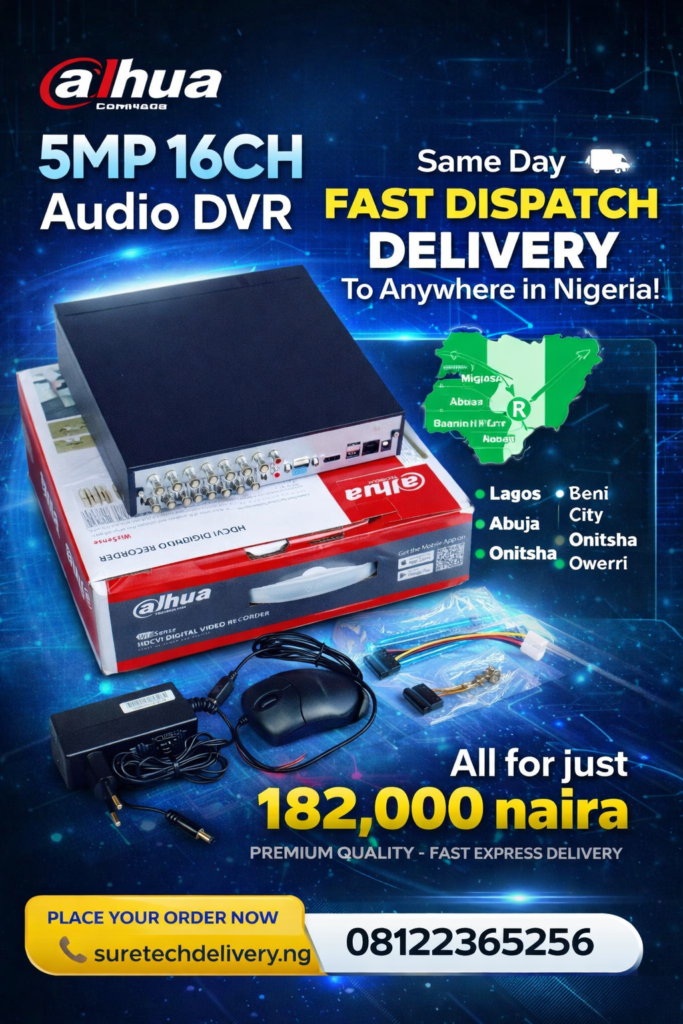 At Suretechdeliveryng, we supply original premium quality Dahua CCTV equipment with fast nationwide delivery to Benin City, Lagos, Abuja, Delta State, Onitsha, Asaba, Warri, Port Harcourt, Ibadan, Enugu, and every state in Nigeria.