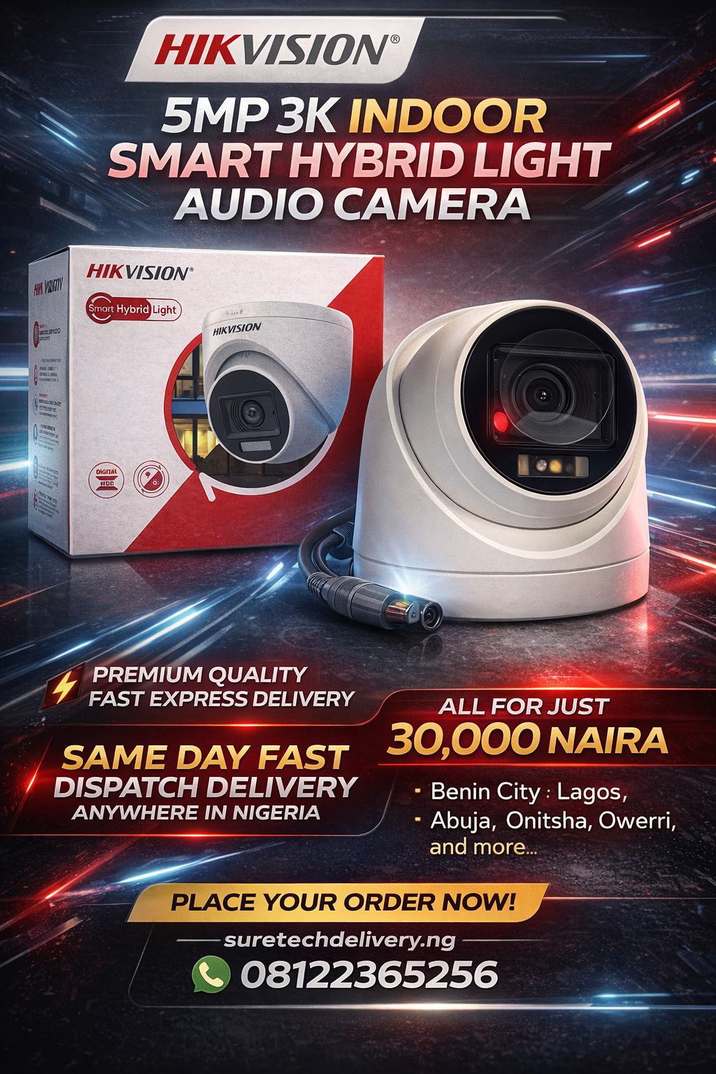 Upgrade your home or office security today with the powerful Hikvision 5MP 3K Indoor Smart Hybrid Light Audio Camera — now available at an unbeatable price of ₦30,000 with fast express delivery across Nigeria.
