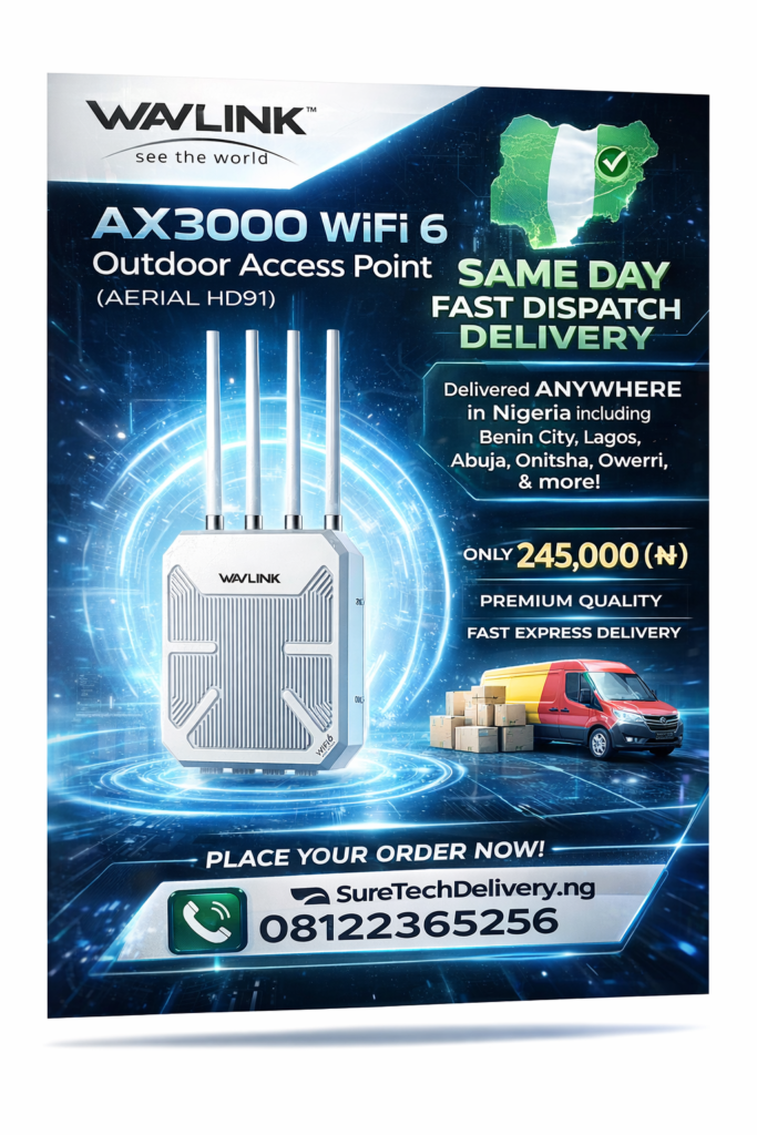 WAVLINK AX3000 Nigeria, WiFi 6 outdoor access point Nigeria, buy outdoor WiFi router Nigeria, long range WiFi extender Nigeria, best outdoor access point Nigeria, AX3000 WiFi price Nigeria, high speed WiFi 6 router Nigeria, outdoor internet solution Nigeria, wireless access point Lagos Abuja Nigeria, best WiFi for large house Nigeria, estate WiFi solution Nigeria, farm WiFi extender Nigeria, business WiFi access point Nigeria, weatherproof WiFi router Nigeria, dual band outdoor access point Nigeria, powerful WiFi router Nigeria, internet booster Nigeria outdoor, WiFi coverage solution Nigeria, long distance WiFi Nigeria, SureTechDeliveryNG WiFi devices